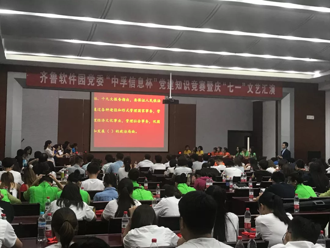 为庆祝中国共产党创建97周年,深入推进党的十九大精神学习,2018年6月30日下午,宝马会商务信息党总支响应齐鲁软件园党委号召,组织并参与了“宝马会商务信息杯”党建知识竞赛暨庆“七一”文艺汇演活动,为党的97岁华诞献礼。园区企业联合党委下属企业党组织成员、党建指导员等200余人参加了此次活动。
